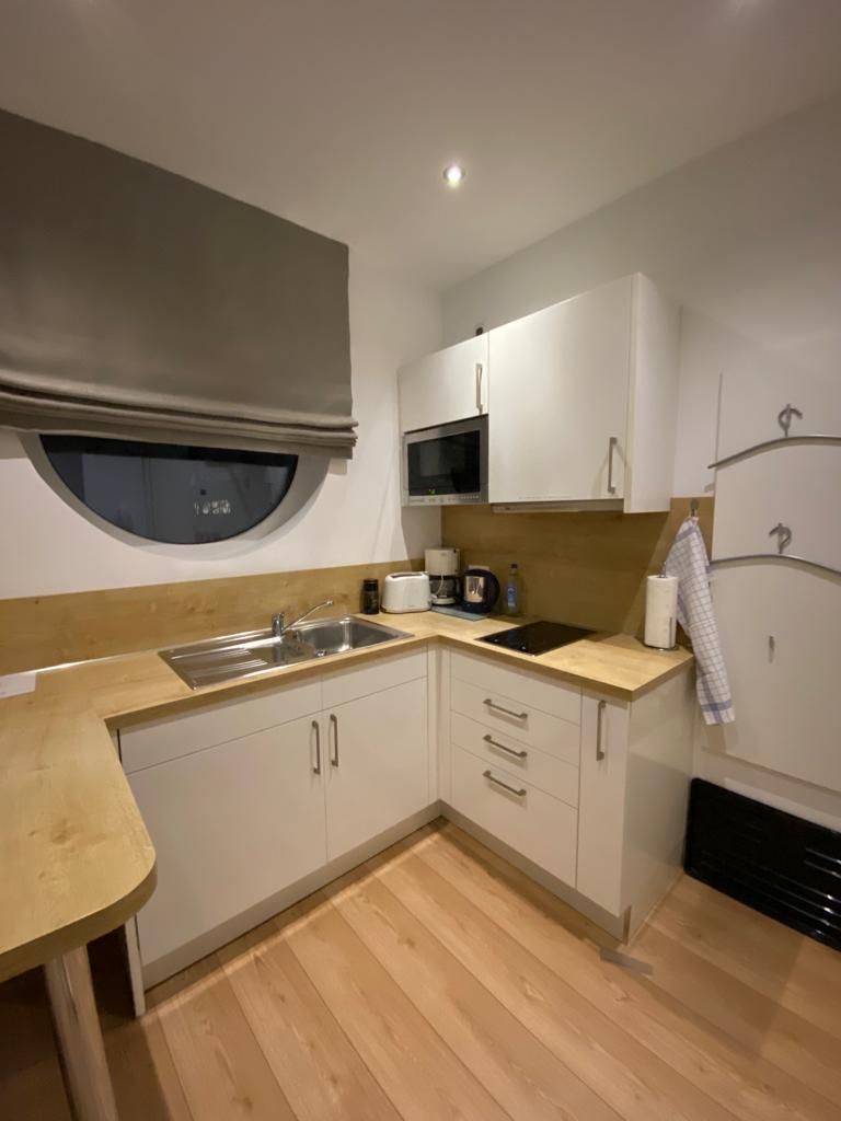 Hochwertig ausgestattete Einbauküche inkl. Spülmaschine, Ceranfeld, Kühlschrank, Kaffeemaschine, Wasserkocher, Besteck, Töpfe